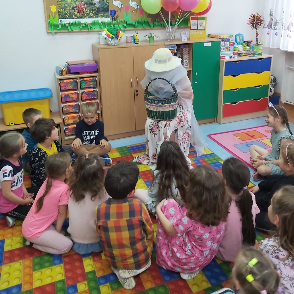 Od rana panowała radosna atmosfera, a na dzieci czekało wiele konkursów i niespodzianek.  Dużym przeżyciem w tym dniu były odwiedziny wróżki, która wręczyła przedszkolakom upominki oraz złożyła im życzenia.