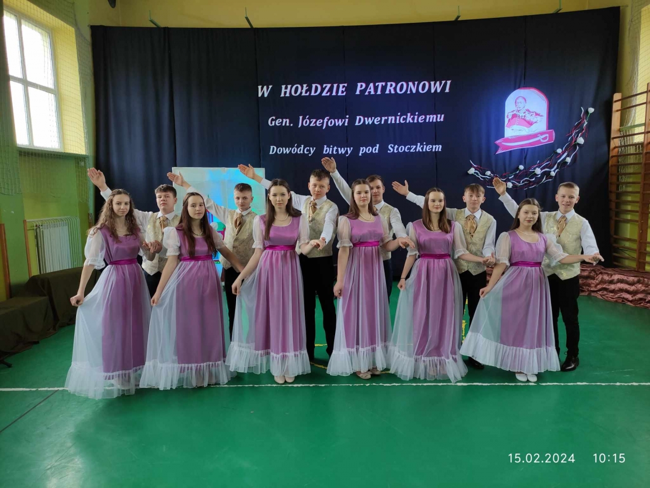 W tym roku uroczystości  Dnia Patrona odbyły się 15 lutego. Akademia rozpoczęła się od odśpiewania hymnu. Następnie dyrektor szkoły p. Ewa Cizio powitała zaproszonych gości: ks. proboszcza Sławomira Suleja, Burmistrza Miasta Marcina Sentkiewicza, przewodniczącego Rady Miasta Krzysztofa Szczepańczyka,  radnych Rady Miasta: Ewę Mokicką, Danutę Żebrowską, Kingę Moreń, Pawła Flisa, Piotra Rosę, Sekretarz Miasta Hannę Domańską – Celej, Skarbnik Miasta Ewę Soćko, przewodniczącą Rady Rodziców Paulinę Grzybowską, dyrektora MOK Izabelę Śledź, kierownika MOPS Krystynę Salamonik oraz całą społeczność szkolną: nauczycieli, uczniów i rodziców.