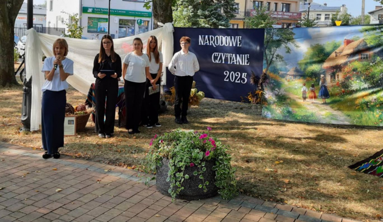 5.09.2025 r. uczniowie naszej szkoły włączyli się w Ogólnopolską Akcję ,,Narodowego Czytania'', organizowaną przez Miejski Ośrodek Kultury, pod patronatem Pary Prezydenckiej.