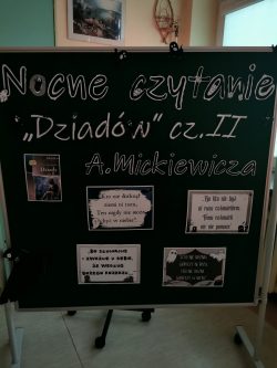 W ramach Międzynarodowego Miesiąca Bibliotek Szkolnych oraz zaciekawienia uczniów dramatem A. Mickiewicza, 30 października zorganizowaliśmy Nocne czytanie „Dziadów cz. II”.
